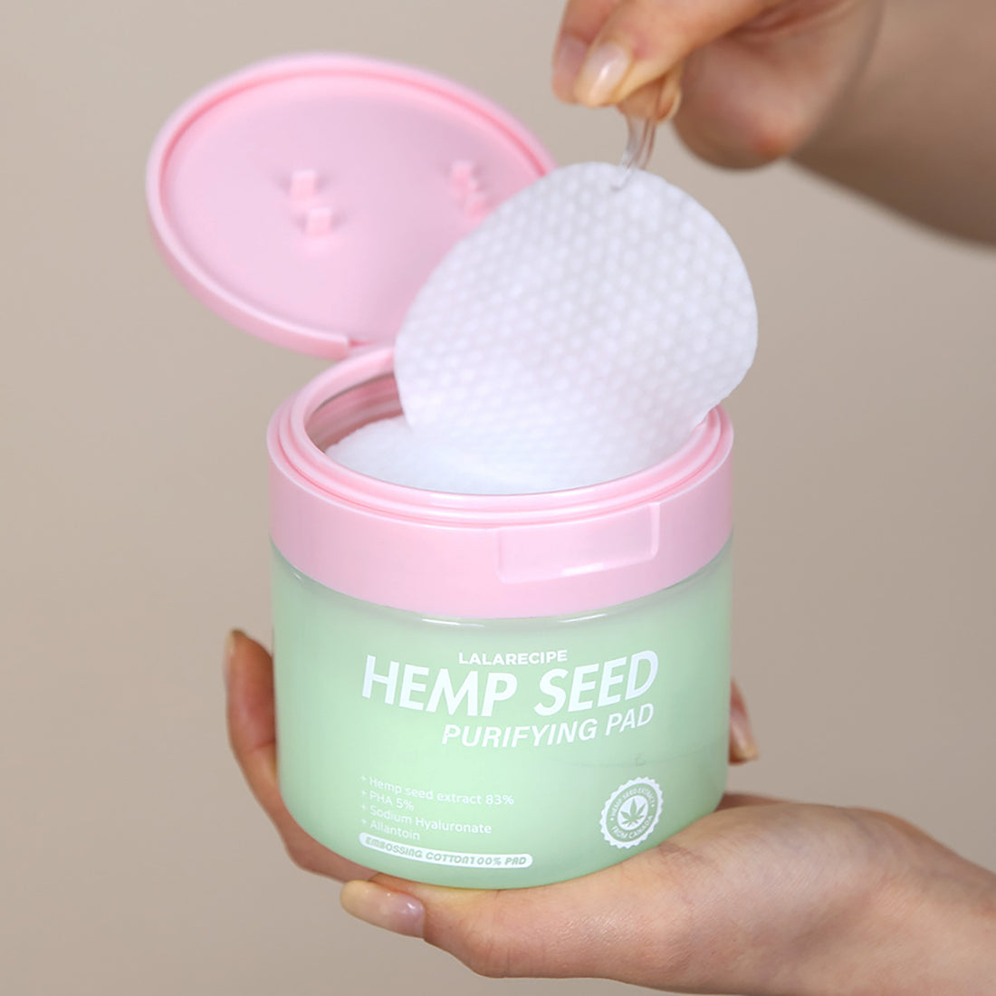 Dischetti purificanti e tonificanti con 83% estratto di semi di canapa e 5% PHA, ideali per migliorare la consistenza dei pori dilatati e ridurre il sebo in eccesso.